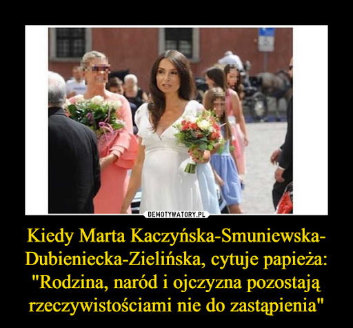 Kiedy Marta Kaczynska Smuniewska Dubieniecka Zielinska Cytuje Papieza Rodzina Narod I Ojczyzna Pozostaja Rzeczywistosciami Nie Do Zastapienia Obrazkowo Pl Najlepsze Memy W Sieci from img8.dmty.pl Marianna was born in 1875, in warszawa. Marta kaczyńska wzięła w weekend ślub. Nawet jeśli marta kaczyńska wspierałaby jarosława kaczyńskiego, to naprawdę robienie zarzutu, że najbliższa rodzina wspiera kandydata, który ma być premierem w przyszłości, byłoby bardzo. Zobacz najciekawsze publikacje na temat: Od kiedy andrzej duda został prezydentem, interesują się nim nie tylko media, ale i sami wyborcy. Polityczna kariera rodziców sprawiła, że kaczyńska i jej życie prywatne stały się obiektem zainteresowania mediów. Jako córka lecha i po tragedii w smoleńsku (2010 r.), marta kaczyńska stała się bohaterką filmów dokumentalnych. Prezydencka córka straciła bowiem oboje rodziców.